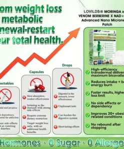 We are a top-tier endocrinology research team., and many of us have personally experienced obesity and its associated complications. Over the years, we have also evaluated commonly available weight-loss interventions on the market, including injectable therapies, capsules, and Oral weight-loss pills. However, their outcomes were often limited, and many were accompanied by tolerability concerns. These experiences motivated us to develop a safer, more natural, and more effective approach to metabolic health and weight management. After more than 12 years of research, our team initiated self-testing of this program, successfully overcoming the limitations of traditional single-pathway interventions that frequently cause gastrointestinal side effects. By adopting a dual-pathway strategy—supporting appetite regulation and fat metabolism while also addressing post-weight-loss skin firmness—we observed significant improvements in body weight and metabolic health, without rebound weight gain or adverse reactions. Subsequently, we conducted large-scale studies and clinical trials involving more than 5,000 participants, further validating the performance of 𝐋𝐎𝐕𝐈𝐋𝐃𝐒® 𝐌𝐨𝐫𝐢𝐧𝐠𝐚 · 𝐁𝐞𝐞 𝐯𝐞𝐧𝐨𝐦 · 𝐁𝐞𝐫𝐛𝐞𝐫𝐢𝐧𝐞 × 𝐍𝐀𝐃+ 𝟖-𝐢𝐧-𝟏 𝐀𝐝𝐯𝐚𝐧𝐜𝐞𝐝 𝐍𝐚𝐧𝐨 𝐌𝐢𝐜𝐫𝐨𝐧𝐞𝐞𝐝𝐥𝐞 𝐏𝐚𝐭𝐜𝐡 in metabolic regulation, appetite control, and overall health outcomes. These benefits were particularly pronounced among overweight or obese adults over the age of 40. Supported by contemporary medical research, 𝐋𝐎𝐕𝐈𝐋𝐃𝐒® 𝐌𝐨𝐫𝐢𝐧𝐠𝐚 · 𝐁𝐞𝐞 𝐯𝐞𝐧𝐨𝐦 · 𝐁𝐞𝐫𝐛𝐞𝐫𝐢𝐧𝐞 × 𝐍𝐀𝐃+ 𝟖-𝐢𝐧-𝟏 𝐀𝐝𝐯𝐚𝐧𝐜𝐞𝐝 𝐍𝐚𝐧𝐨 𝐌𝐢𝐜𝐫𝐨𝐧𝐞𝐞𝐝𝐥𝐞 𝐏𝐚𝐭𝐜𝐡 has undergone rigorous FDA regulatory review and evaluation, with its safety, effectiveness, and compliance formally recognized. This formulation represents a scientific advancement beyond conventional weight-loss products that are often associated with significant gastrointestinal burden, offering a natural, safe, and effective option for individuals seeking comprehensive metabolic support and sustainable long-term weight management.”