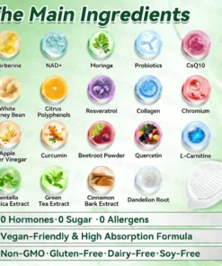 Benefits:ย Supports effective weight reduction and appetite regulation, stabilizes blood glucose levels, promotes cardiovascular health, reduces chronic low-grade inflammation, and helps alleviate metabolism-related fatigue.