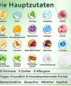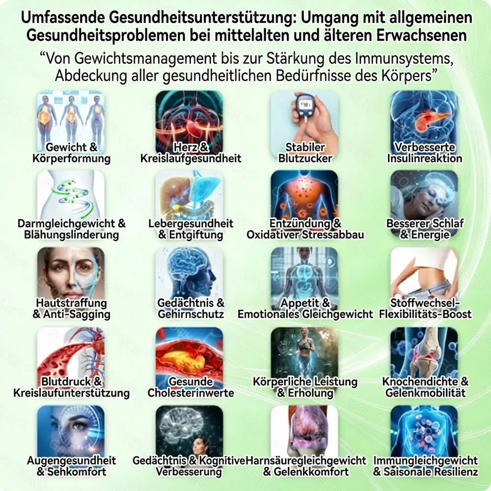 Vorteile: Unterstützt effektive Gewichtsreduktion und Appetitregulation, stabilisiert den Blutzuckerspiegel, fördert die Herz-Kreislauf-Gesundheit, reduziert chronische niedriggradige Entzündungen und hilft, durch Stoffwechselbedingte Müdigkeit zu lindern.