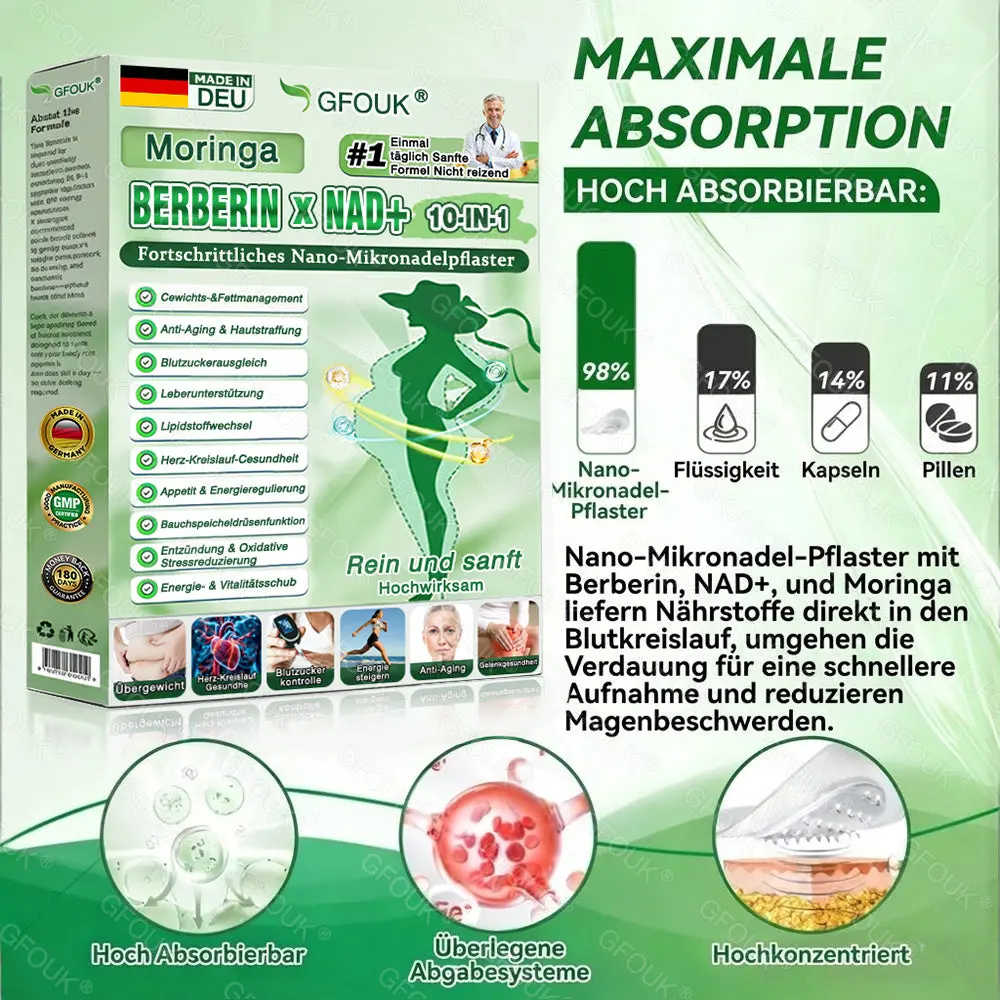 GFOUK® Moringa · Berberin × NAD+ Advanced Nano-Mikronadel-Patch: 98 % Absorptionsrate – für nachhaltige Verbesserung von Gewicht, Leber-, Darm- und Hautgesundheit