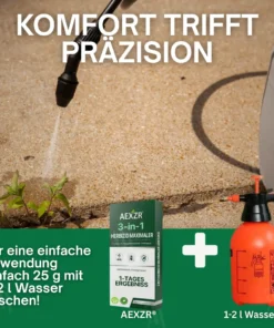 AEXZR® 3-in-1 Herbizid Maximale ist die revolutionäre Lösung, die entwickelt wurde, um hartnäckiges Unkraut zu beseitigen und Ihren Garten vor schädlichen Schädlingen zu schützen – alles in einer leistungsstarken Anwendung. Im Gegensatz zu herkömmlichen Herbiziden, die Wochen brauchen, um Ergebnisse zu zeigen, wirkt unsere fortschrittliche Formel schnell und liefert innerhalb weniger Stunden sichtbare Effekte, während sie ein Höchstmaß an Sicherheit für Ihre Familie, Haustiere und die Umwelt gewährleisten.