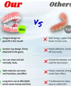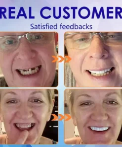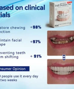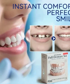 Instant Perfect Smile: Transform your smile instantly with the . Experience the satisfaction of achieving a flawless. customized fit right away. Our innovative denture set eliminates the discomfort of poorly fitting dentures. offering you a snug and natural feel that makes your dentures feel like a true part of your mouth. Say goodbye to sore spots and irritation as Denture Set provides immediate relief. allowing you to enjoy your smile with newfound confidence and comfort. Enjoy a seamless transition to a better-fitting. more comfortable denture experience without delay.