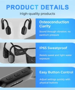 Specifications: Color: Black (Upgraded);Rated Voltage: 3.7V; Rated Power: 0.22W; Battery Life: Over 12 hours; Hearing Aid Type: Osteoconduction; Waterproof Rating: IP65 (Upgraded). Package Contents: 1*Bluetooth Earphone. Notes: Please check that your address is correct before placing your order. Colors may vary slightly due to different screen settings.