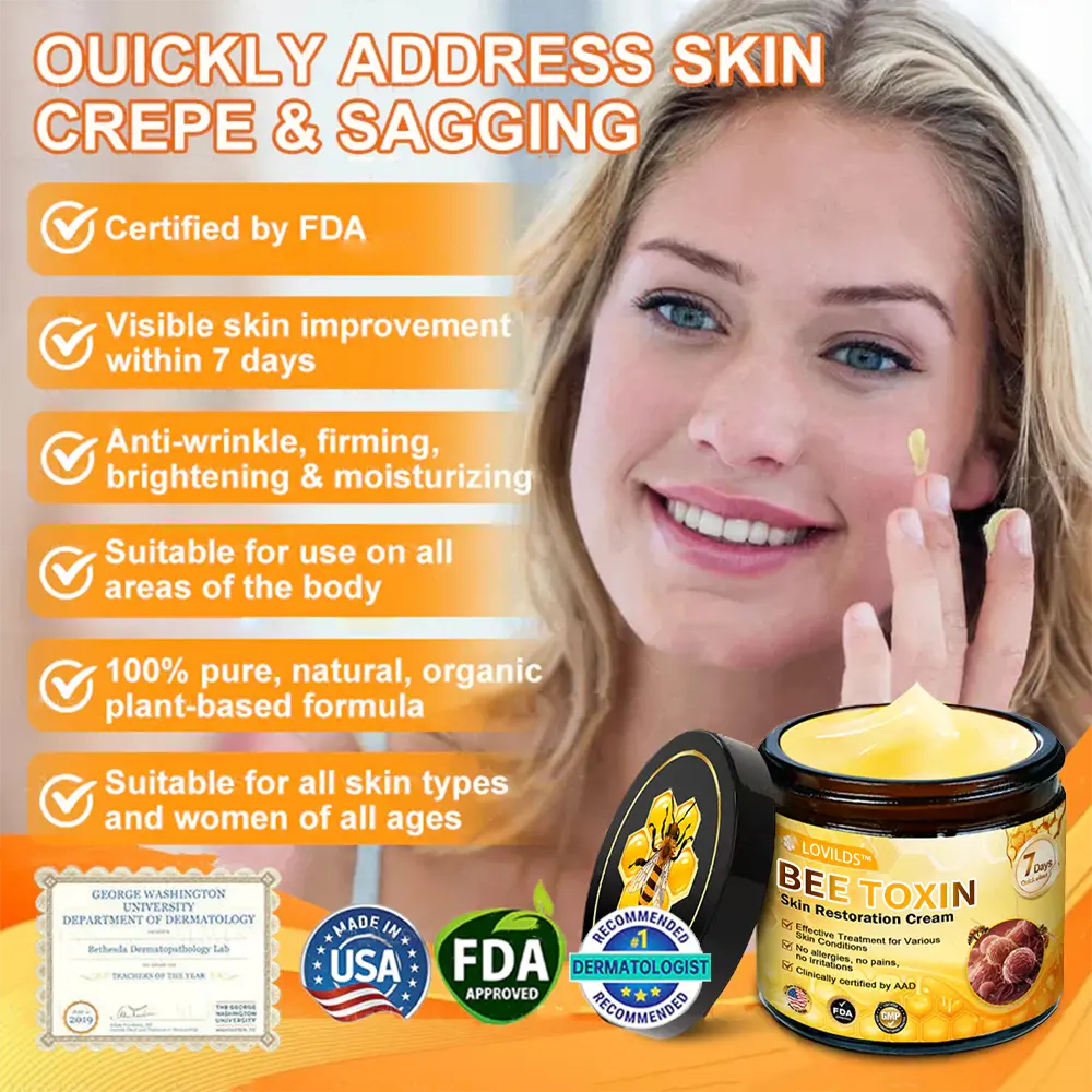 ✅Effective Results: LOVILDS™ Bee Toxin Skin Repair Cream delivers noticeable results, providing visible improvements to your skin’s tone, texture, and firmness.