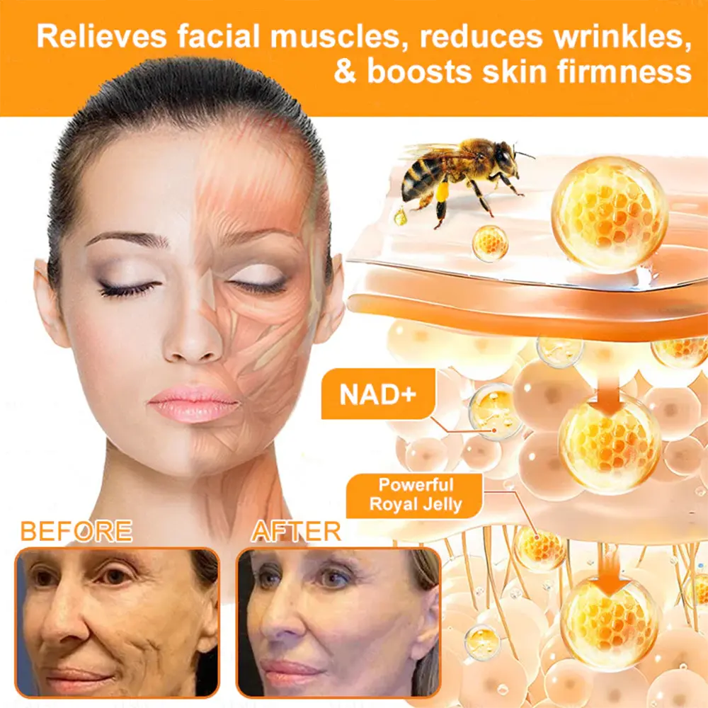 LOVILDS™ Bee Toxin Skin Repair Cream uses bee Toxin peptides to mimic the effects of Botox, relaxing facial muscles and reducing the formation of expression lines. At the same time, hyaluronic acid deeply hydrates the skin, making it plump and effectively smoothing fine lines and wrinkles. The combination of Acetyl Hexapeptide-8 and botulinum toxin targets deep wrinkles like forehead lines and crow’s feet, leaving your skin looking firmer and smoother.