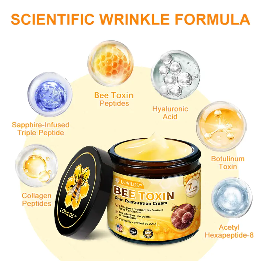 Clinically tested by dermatologists, LOVILDS™ Bee Toxin Skin Repair Cream can show significant improvements in wrinkles and skin laxity within 7 days.