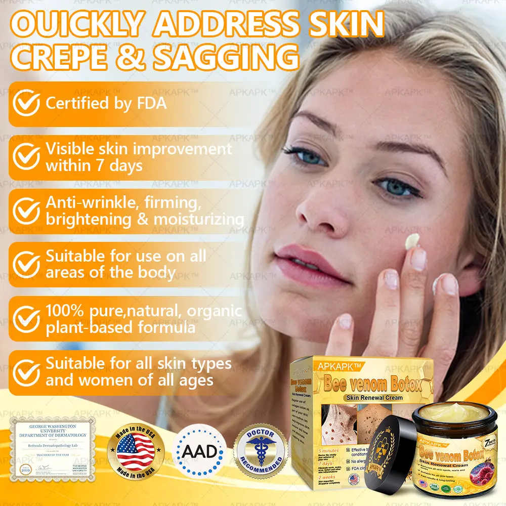 APKAPK® Bee Venom Botox Skin Renewal Cream addresses all the problems associated with sagging skin, wrinkles and more!