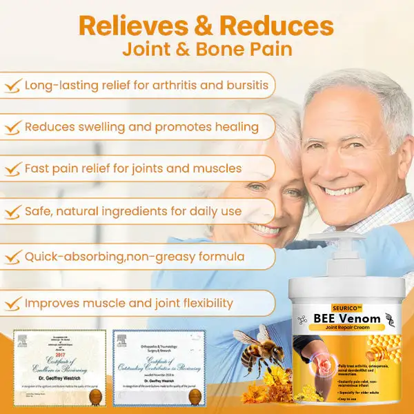 Furthermore, research has shown that SEURICO™ Bee Venom Joint Repair Cream improves overall joint and bone health, reinforcing its reputation as a reliable and powerful solution for bone and joint issues.