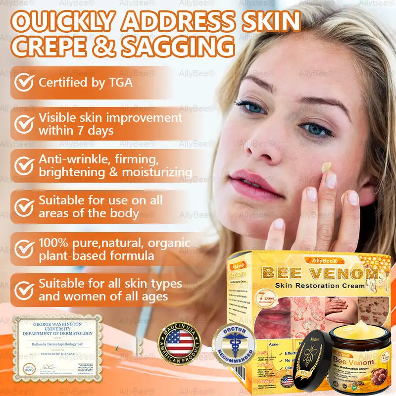 Allybee® Bee Venom Skin Restoration Cream addresses all the problems associated with sagging skin, wrinkles and more!
