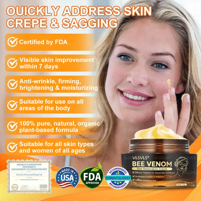 VLSVLS® Bee Venom Skin Restoration Cream addresses all the problems associated with sagging skin, wrinkles and more!