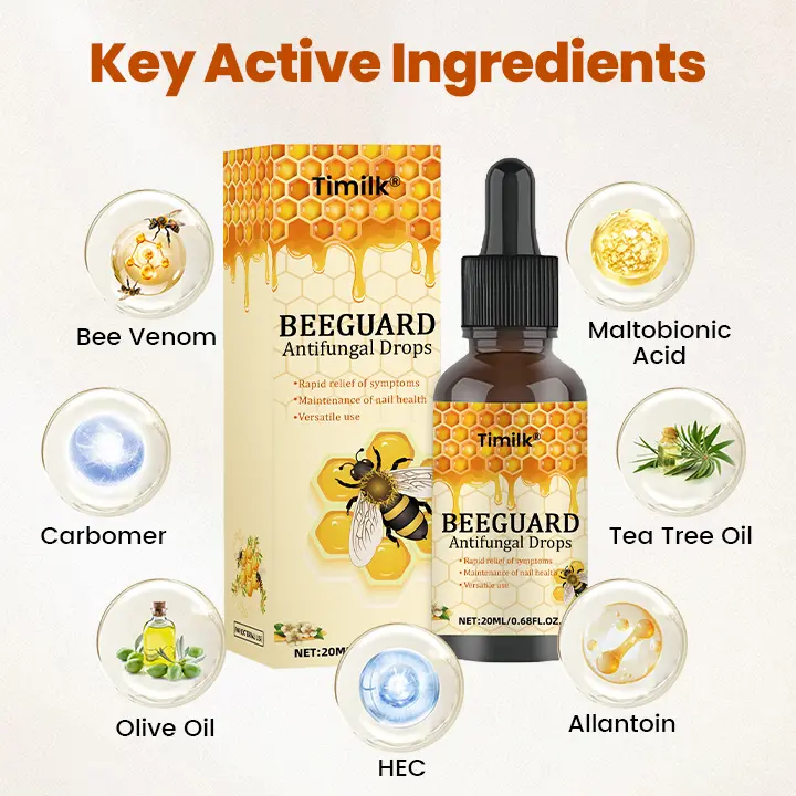 Developed by a team of dermatological experts, Timilk® BeeGuard Antifungal Drops are designed to target and eliminate persistent nail fungal infections at their root. Harnessing the potent bioactive compounds in bee venom, this advanced formula delivers powerful antifungal and anti-inflammatory effects deep into the nail bed for visible, lasting results.