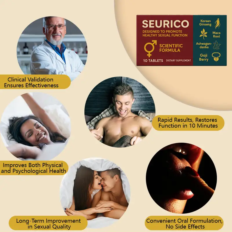 Additionally, SEURICO® helps balance the nervous system, addressing sexual function issues caused by anxiety or stress. Its natural ingredients help relax the body, reducing psychological pressure that can lead to sexual dysfunctions like premature ejaculation (PE), allowing men to quickly restore sexual function even in on-demand situations.