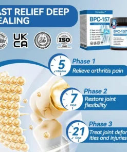 Tnnedey® BPC-157 Joint Healing Cream provides fast pain relief and safely and effectively resolves up to 99% of symptoms of orthopedic problems such as osteoarthritis. rheumatoid arthritis. bursitis. tendinitis and osteoporosis in 2 weeks. helping achieve full recovery.No matter the type of arthritis you have—whether it’s osteoarthritis. rheumatoid arthritis. bursitis. tendinitis. osteoporosis. gout. carpal tunnel syndrome. ligament sprains and strains. bunion deformities. or tennis elbow—our product is formulated to treat and alleviate the pain associated with all these conditions.