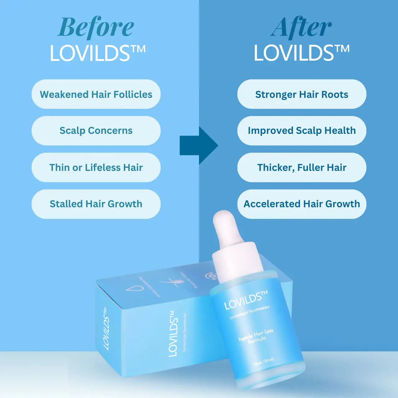 Hair loss doesn’t have to be permanent. LOVILDS™ is not just a serum—it’s a breakthrough in hair regrowth, backed by clinical research and formulated to address the root causes of thinning hair. Whether you’re battling genetics, stress, or aging, this is your path to thicker, healthier hair.