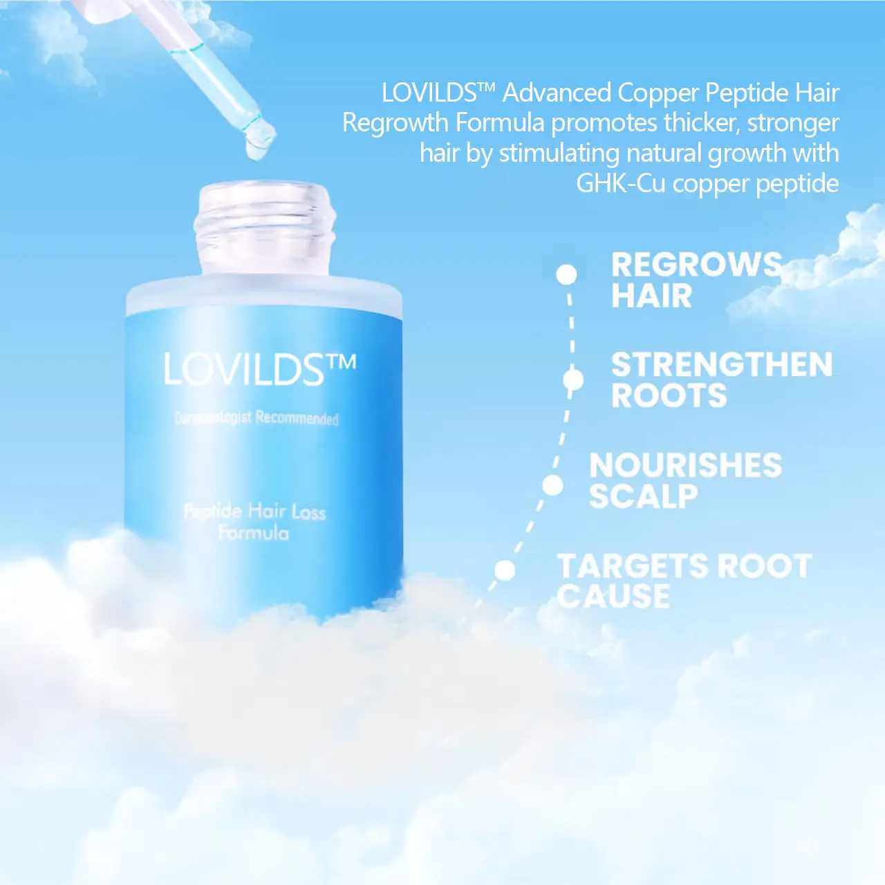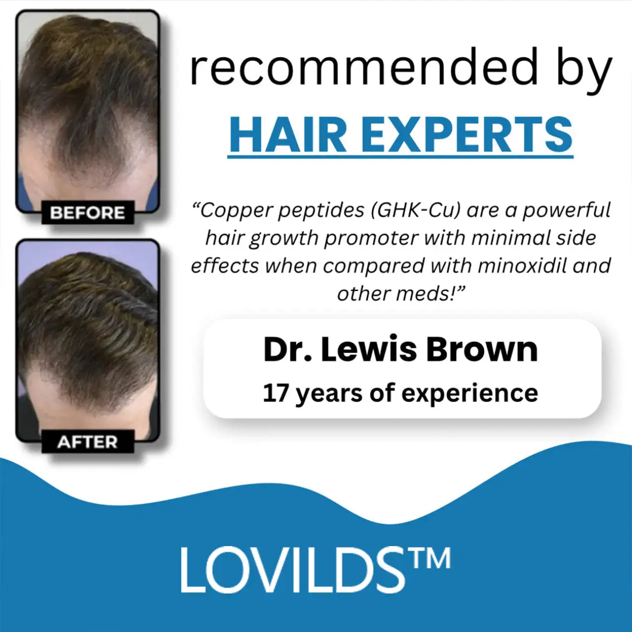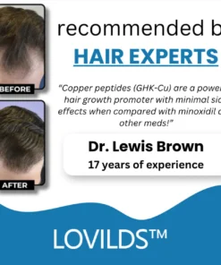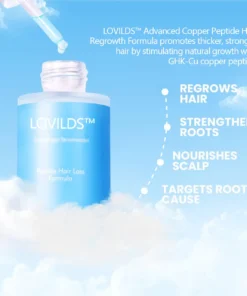 Hair loss often begins when your follicles go dormant, unable to produce thick, healthy strands. The main ingredient, Copper Peptides, in LOVILDS™ work at the cellular level to reactivate these dormant follicles, promoting new, natural growth and restoring hair density.