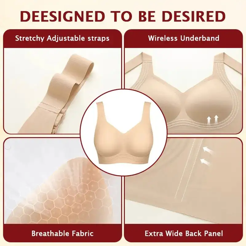 Engineered with 4-layer 360° jelly strips, this bra redefines wireless support. The flexible strips hug your curves, delivering gentle lift while keeping the bra firmly in place. No slipping, no shifting—just secure, long-lasting hold that adapts to every movement of your day.