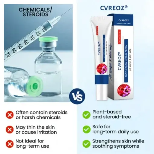 Soothe your skin with CVREOZ® SootheGlow Herbal Cream, powered by rare saffron extract and dermatologist-trusted botanicals. Our steroid-free formula calms inflammation, hydrates deeply, and helps rebuild your skin’s natural barrier—without irritation.