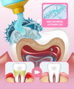 Applied directly, Ceoerty® DentaGlow Niacinamide Whitening Toothpaste provides essential nutrients, stimulating gum tissue regeneration. With anti-inflammatory compounds, it reduces inflammation, eases discomfort, and supports an environment for gum regeneration. The gel aids in cellular regeneration, and collagen production, restoring proper gum attachment, preventing recession, and enhancing overall gum health.