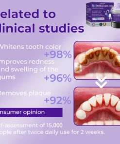 With LOVILDS™ Tooth Repair Mineral Powder, noticeable whitening results can be achieved in just one week. Since purple is the complementary color to yellow on the color wheel, applying water-soluble purple dye to the teeth can help neutralize any yellow tones. Moreover, the vitamin C-rich formula effectively removes plaque, tartar, and stains, bringing back your teeth’s natural whiteness.