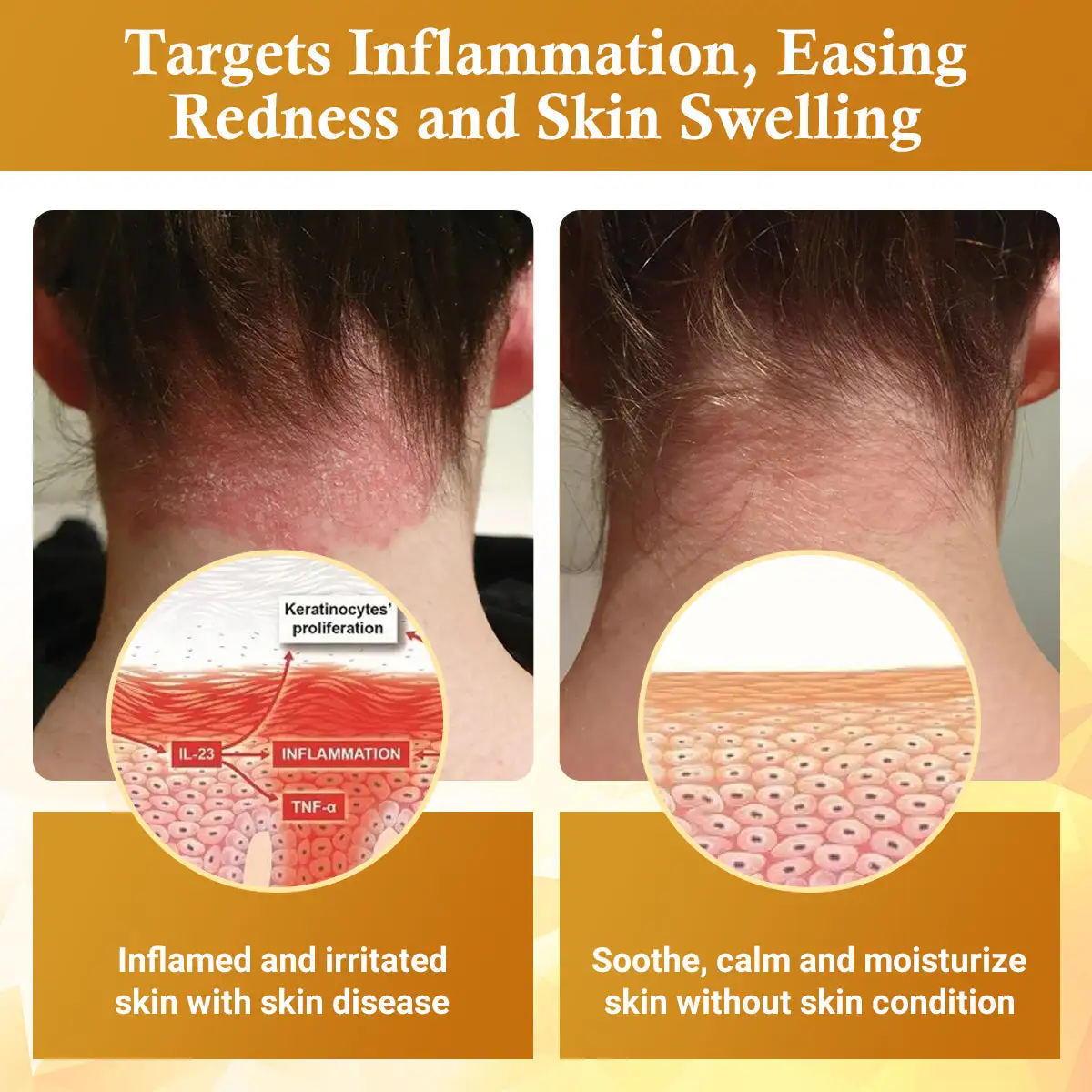 This advanced cream battles eczema, psoriasis, ringworm, and other skin issues with its potent blend of active ingredients. It calms itching and reduces inflammation, which helps to alleviate discomfort and redness associated with these conditions. The formula promotes healing by supporting the skin’s natural repair processes and improving overall skin health. By targeting the root causes of irritation and promoting a balanced skin environment, it helps restore a healthier, more resilient complexion.