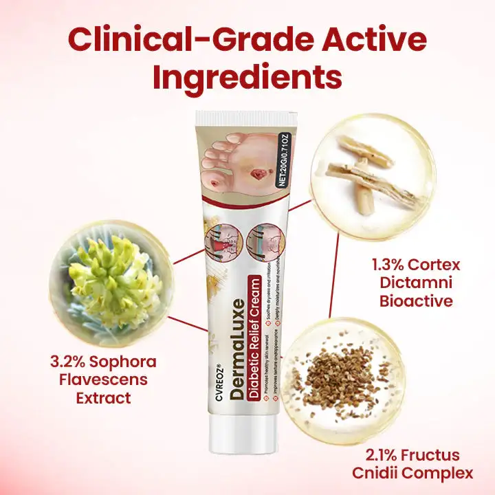 Each ingredient is precisely measured and clinically tested to address the three main causes of diabetic skin problems:
