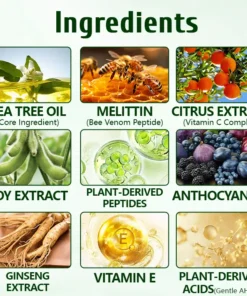 Through deep transdermal absorption, the active compounds — Tea Tree Oil, Melittin, Vitamin E, and Ginseng — penetrate the skin barrier to cleanse, repair, and restore naturally.