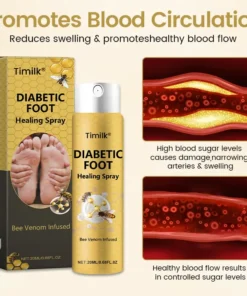 Timilk® Diabetic Foot Healing Spray – Bee Venom Infused is designed to help people with diabetes keep their feet healthy. It boosts blood circulation, helps heal foot ulcers and sores faster, and provides gentle care for diabetic skin. The cream hydrates deeply to prevent dryness and cracking, while also protecting sensitive skin from infections. Its smooth, quick-absorbing formula makes it easy to use every day, giving you an effective way to care for your feet.