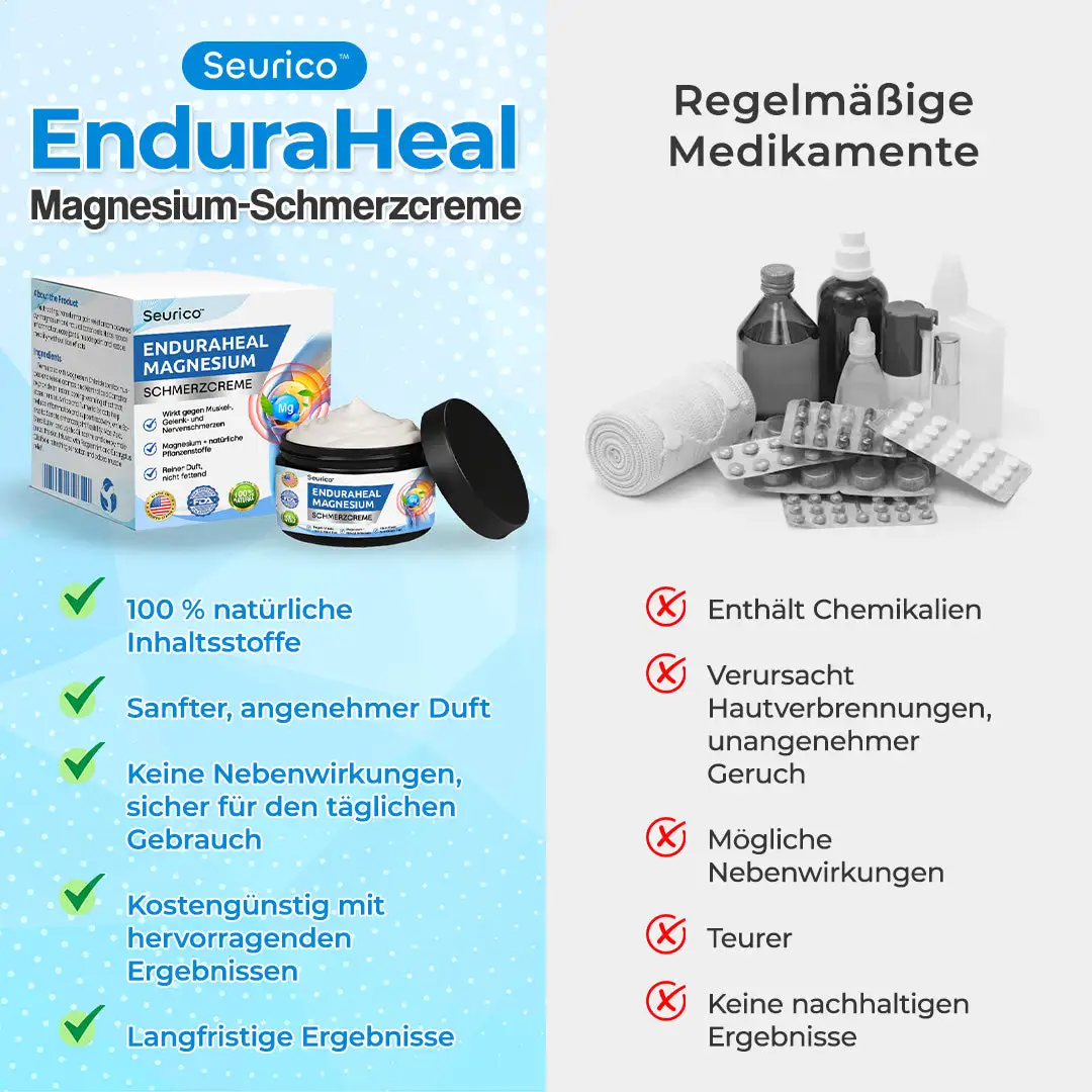 Ready to ease your pain and feel the difference? Seurico™ EnduraHeal Magnesium Pain Relief Cream is your go-to solution for soothing arthritis, easing muscle tension, and calming nerve discomfort. Powered by magnesium and natural extracts, it works to reduce inflammation, improve circulation, and support faster recovery—naturally. Apply it and start feeling relief today!