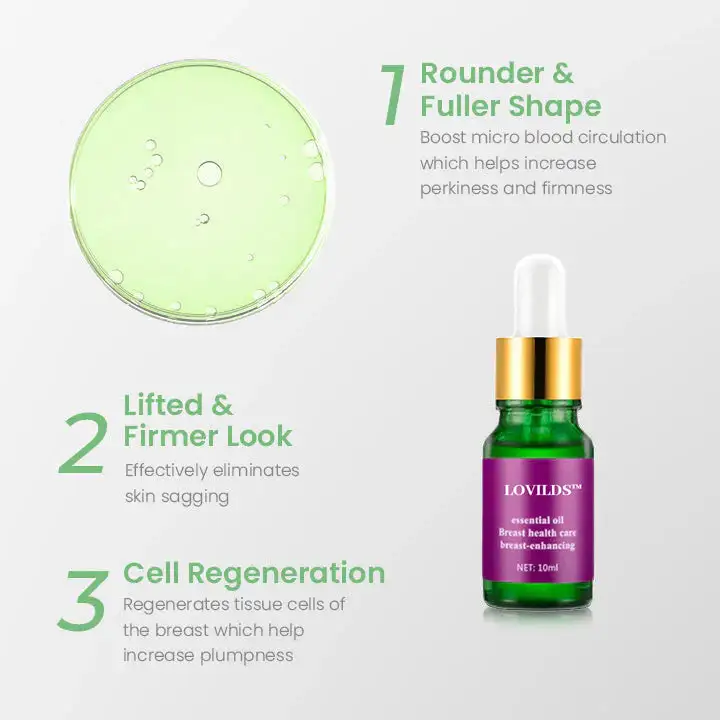 Made from 100% pure and natural plant extracts, LOVILDS™ Bust Firming Natural Essence Oil is safe for all skin types, including even the most sensitive skin. It nourishes, hydrates, and firms the skin, leaving you with a smoother, more youthful appearance. This essential oil works by improving skin elasticity, enhancing firmness, and reducing the appearance of sagging or stretch marks, giving you the confidence to embrace your natural curves with pride.