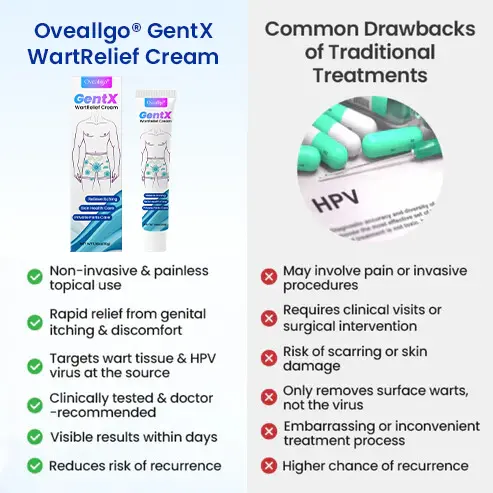 Oveallgo® GentX WartRelief Cream was developed as a clinically informed, science-based solution for men seeking rapid, gentle, and effective relief from genital warts and related symptoms. Designed to address both the visible lesions and the underlying HPV infection, it offers dual-action therapy that not only removes wart tissue but also helps eliminate the viral source—promoting healthier skin and reducing recurrence risk.