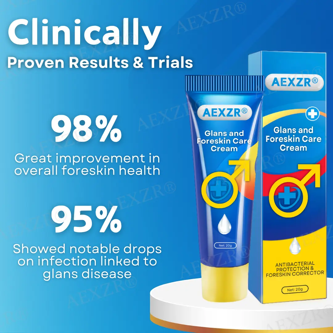 Clinical trials confirm that AEXZR® Glans and Foreskin Care Cream provides effective relief for foreskin and glans-related issues, significantly reducing redness, swelling, and discomfort. Formulated with a unique blend of natural anti-inflammatory and antibacterial ingredients, this cream delivers fast-acting and long-lasting results, promoting both immediate symptom relief and sustained skin healing over time.