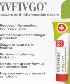 Fivfivgo® GlansCare Anti-Inflammation Cream is a specialized, natural formula designed to soothe and repair inflammation in the glans. With its blend of natural anti-inflammatory ingredients, it effectively targets redness, swelling, itching, and discomfort caused by infections, allergies, or physical irritation.