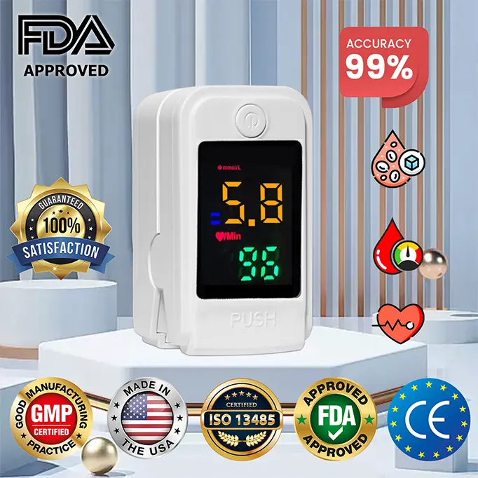 Simply insert your finger and press the start button—it’s completely non-invasive and painless. This makes it ideal for elderly individuals to monitor their blood glucose at home anytime. It’s incredibly convenient for both daily health tracking and routine checks.