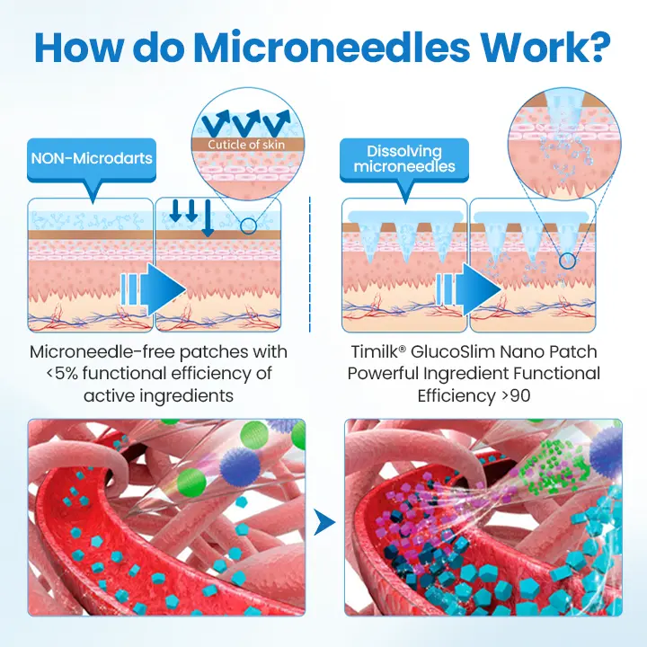 Delivered through the Timilk® GlucoSlim Nano Patch using advanced nano-microneedle technology, this potent compound is absorbed steadily and efficiently, offering users a reliable and holistic approach to health management.