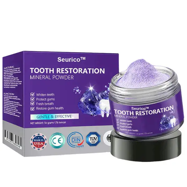 The Seurico™ Gum Repair and Oral Health Mineral Powder quickly relieves pain and inflammation caused by oral issues. It contains grape seed and natural numbing ingredients that effectively reduce symptoms of gum inflammation, provide immediate comfort, and promote gum healing. This fast-acting formula reduces swelling, redness, and sensitivity, ensuring rapid relief.