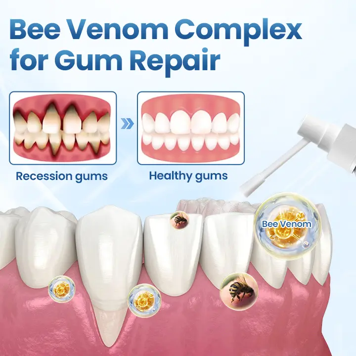 Formulated with bee venom complex (Melittin), a natural anti-inflammatory that helps to repair damaged gum tissue, reduce gum recession, and alleviate gum inflammation, promoting healthier, stronger gums.