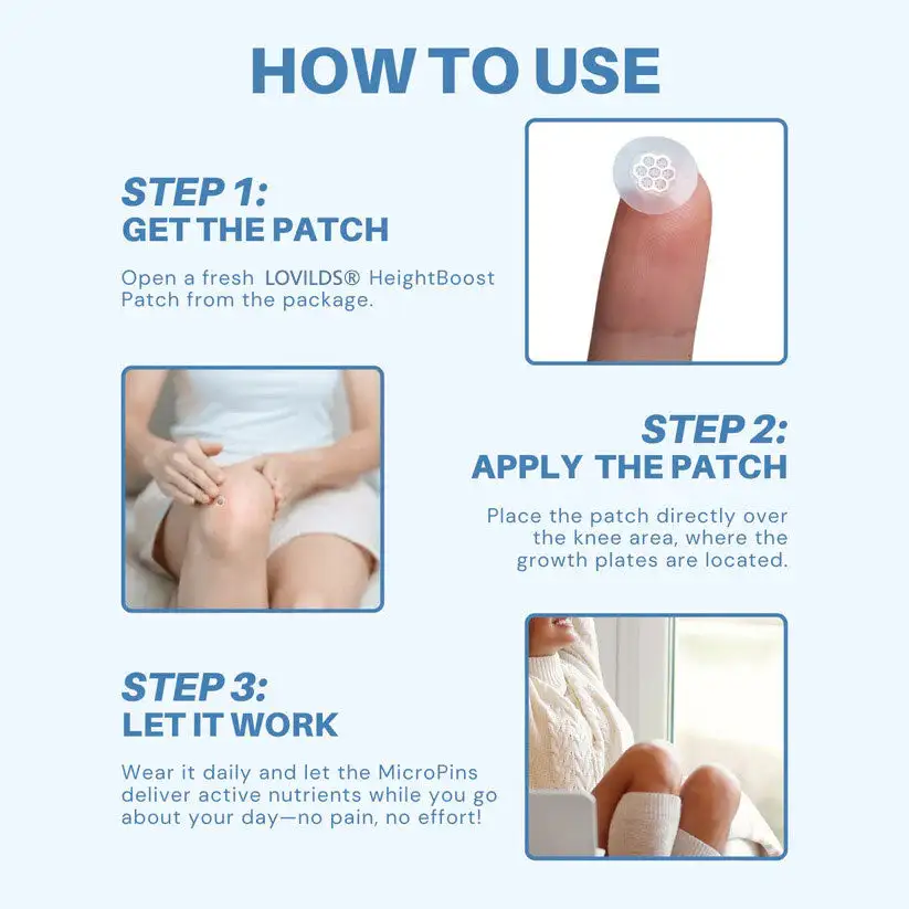 If you’re looking for a way to grow longer naturally and without pain, the LOVILDS® HeightBoost Patch is definitely worth a try. Just wear it as directed and let the advanced MicroPin technology do its job to support your growth process!