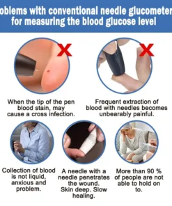 No more invasive and risky methods for blood glucose testing! Measure your blood glucose safely, without the risk of cross-infection or needle injuries to your fingers.