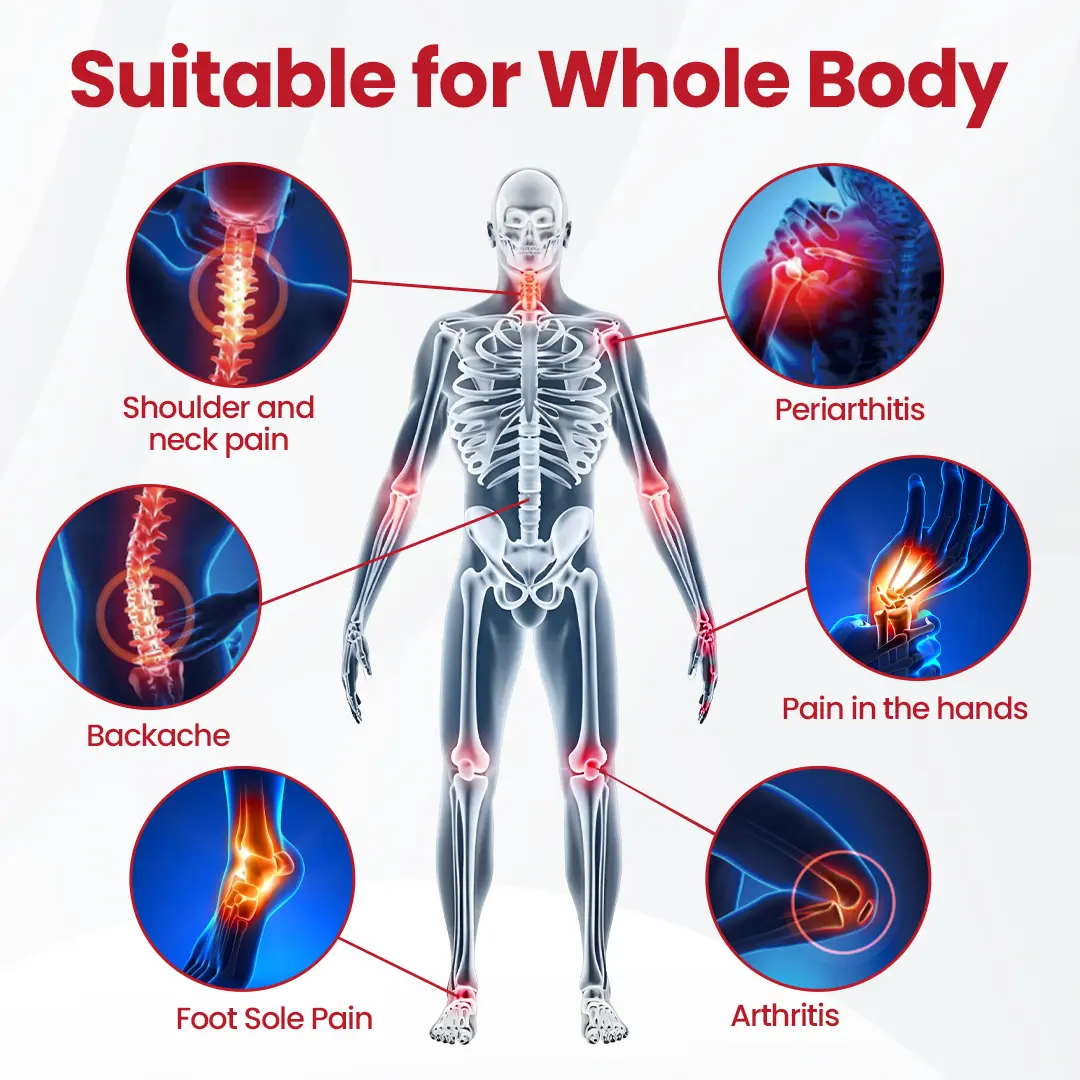 It has shown significant benefits in conditions such as osteoarthritis, rheumatoid arthritis, bursitis, tendinitis, osteoporosis, gout, carpal tunnel syndrome, ligament sprains, muscle strains, bunion deformities, and tennis elbow.