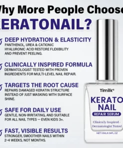 Tired of nails that crack, split, or never grow past a certain length? Daily chores, polish removers, and aging can leave nails weak and dull. Timilk® KeratoNail restores their natural strength, shine, and confidence.