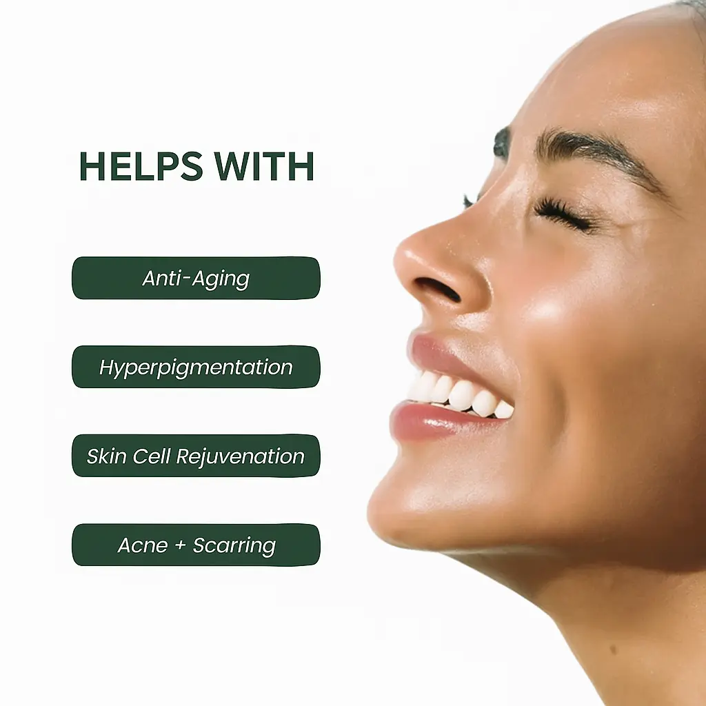 Our formula is designed to work for all skin types, offering a universal solution for those seeking more youthful-looking skin with continued use.