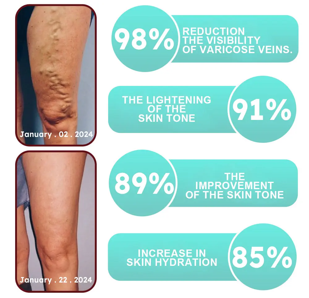 “A few years ago, I first noticed varicose veins on my thighs, but I didn’t think much of it at the time. Over time, the condition worsened—my legs became increasingly swollen and discolored, and I felt self-conscious about wearing skirts or anything that exposed my legs. Eventually, I saw a doctor who explained that I had varicose vein skin disease caused by poor circulation from standing for long periods. The doctor recommended this product, and after using it for about a week, I saw significant improvement. My legs felt lighter, and the swelling reduced. Now, I can confidently wear dresses again! It’s truly amazing, and I hope my experience can help others in the same situation.” — Cassidy Lewis, Dallas ⭐⭐⭐⭐⭐