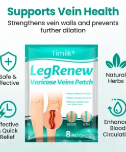 Designed to enhance overall vein health, the Timilk® LegRenew Varicose Veins Patch contains active ingredients that stimulate blood flow in affected areas. When applied, it works to expand blood vessels, promoting circulation and reducing congestion. By supporting vascular health, it improves blood flow for stronger, healthier veins.