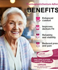 Say goodbye to loose dentures, sticky pastes, and daily reapplications. With LOVILDS®, you can enjoy days of effortless hold, all-day comfort, and complete peace of mind. Order now and experience the adhesive that truly holds up.