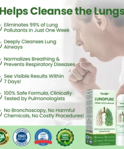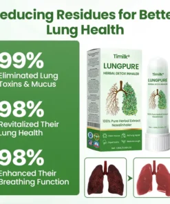 Timilk® LungPure Herbal Detox Inhaler is a powerful herbal solution designed to quickly detoxify your lungs, improve your breathing, and promote overall respiratory health. It effectively eliminates toxins from smoking and pollution, restoring your lungs to their healthiest state.Backed by top pulmonologists, this inhaler delivers fast relief in 15 minutes, easing discomfort and improving lung function. With regular use, it repairs lung tissue and restores full lung health in just 4 weeks.