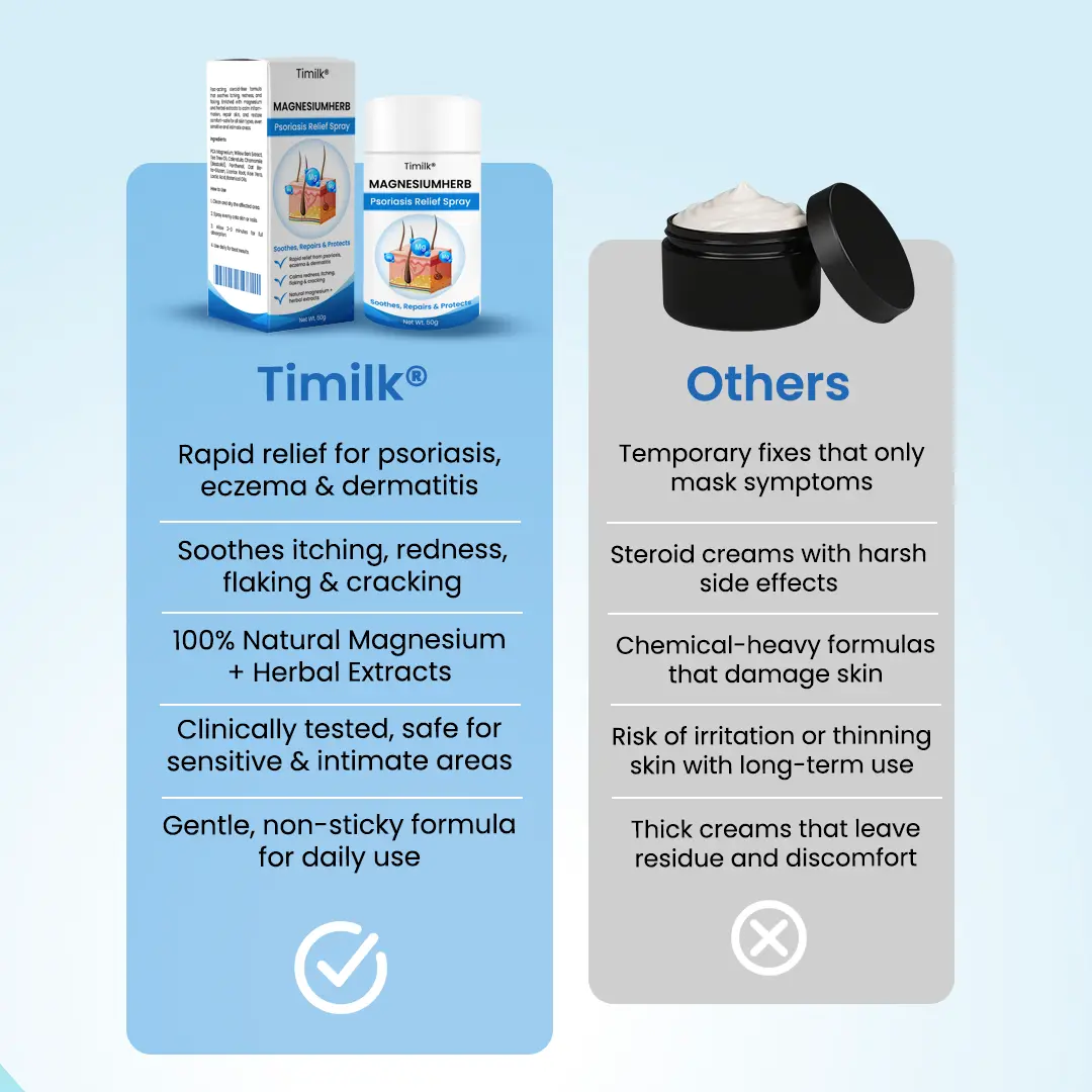 More and more people are turning to Timilk® MagnesiumHerb Psoriasis Relief Cream for soothing relief, visible repair, and skin that finally feels calm, healthy, and renewed.