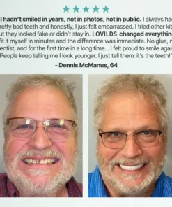 “I can’t believe the transformation! Before using LOVILDS™ – Premium Denture, I was embarrassed to smile or talk freely. My teeth were stained, uneven, and made me feel self-conscious. But now, I feel like a new person! The dentures fit perfectly, feel natural, and give me the confidence to smile brightly.