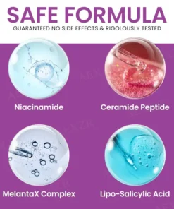 The powerful combination of Niacinamide, Ceramide, MelantaX Complex, and Lipo-Salicylic Acid delivers unparalleled skin rejuvenation. Each plays a vital role in correcting hyperpigmentation and restoring healthy skin: