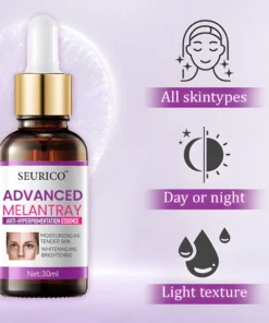 The formula of Seurico™ MelantraY Advanced Anti-Hyperpigmentation Essence is specially designed to target and reduce pigmentation, dark spots, and uneven skin tone, offering a gentle yet effective way to enhance skin brightness with visible results.