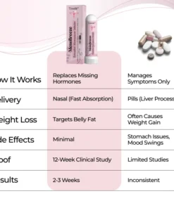 - Quick Absorption: The estradiol is delivered directly into your bloodstream through your nasal passages — no waiting for pills to digest.